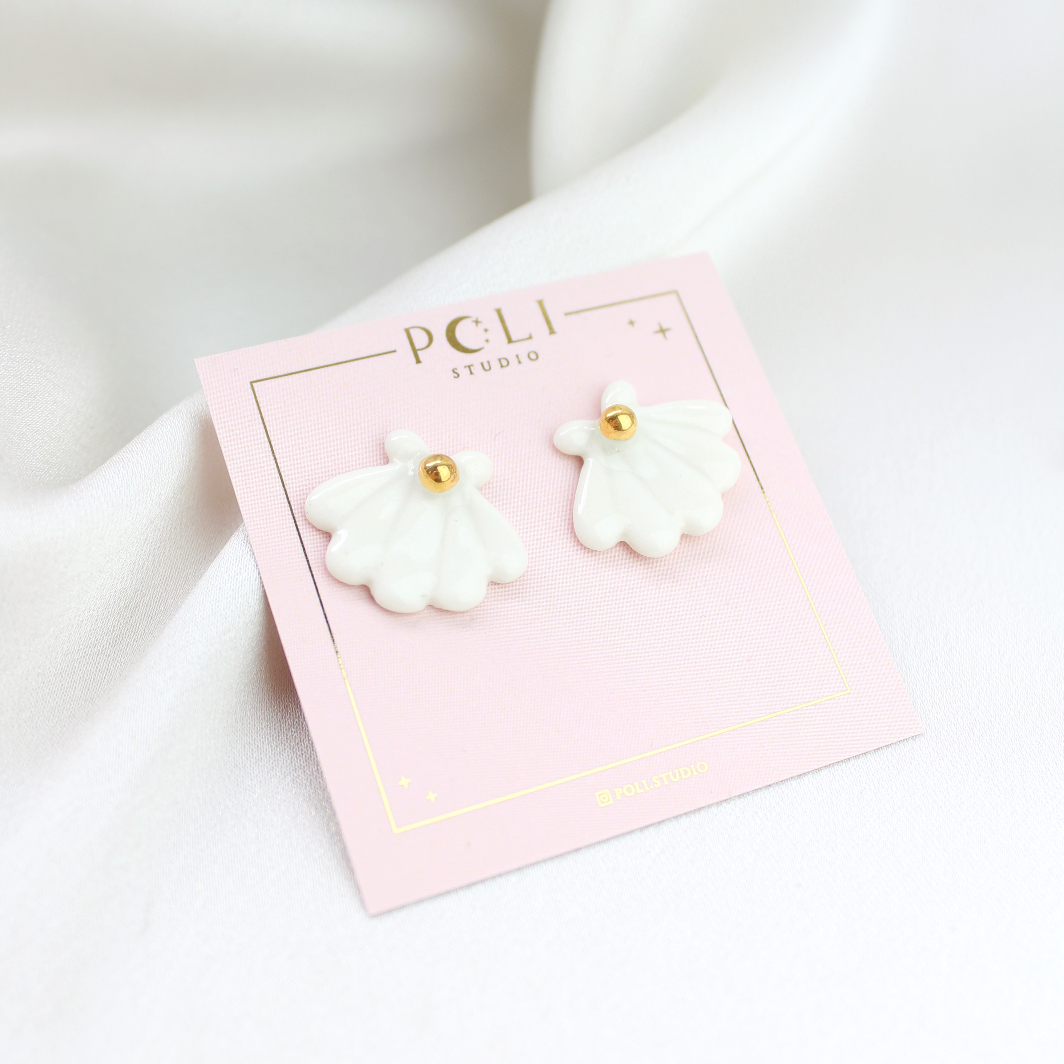 Kolczyki wykonane z porcelany, zdobione 24k złotem. Sztyfty wykonane zostały ze stali szlachetnej.