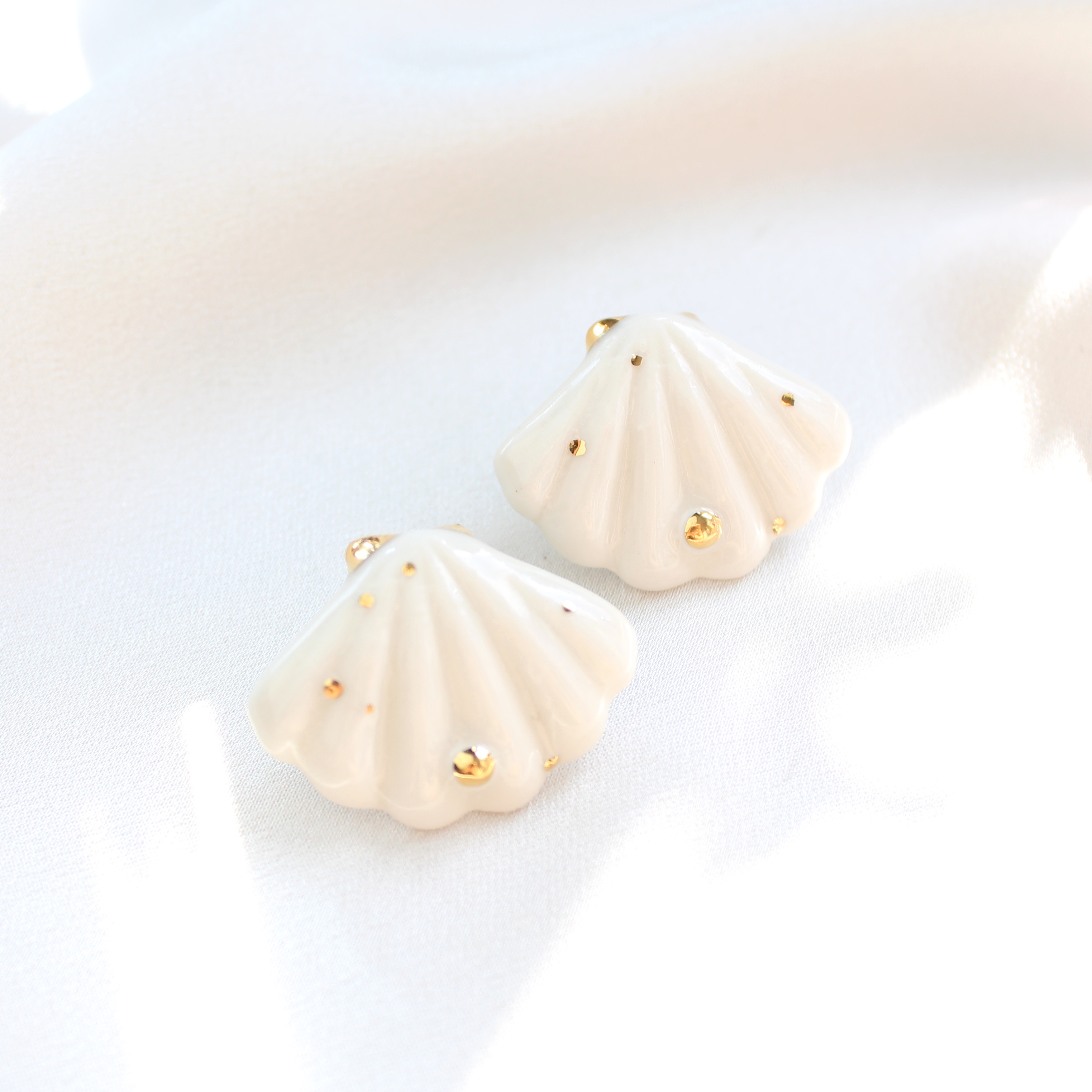 Kolczyki wykonane z porcelany, zdobione 24k złotem. Sztyfty wykonane zostały ze stali szlachetnej.