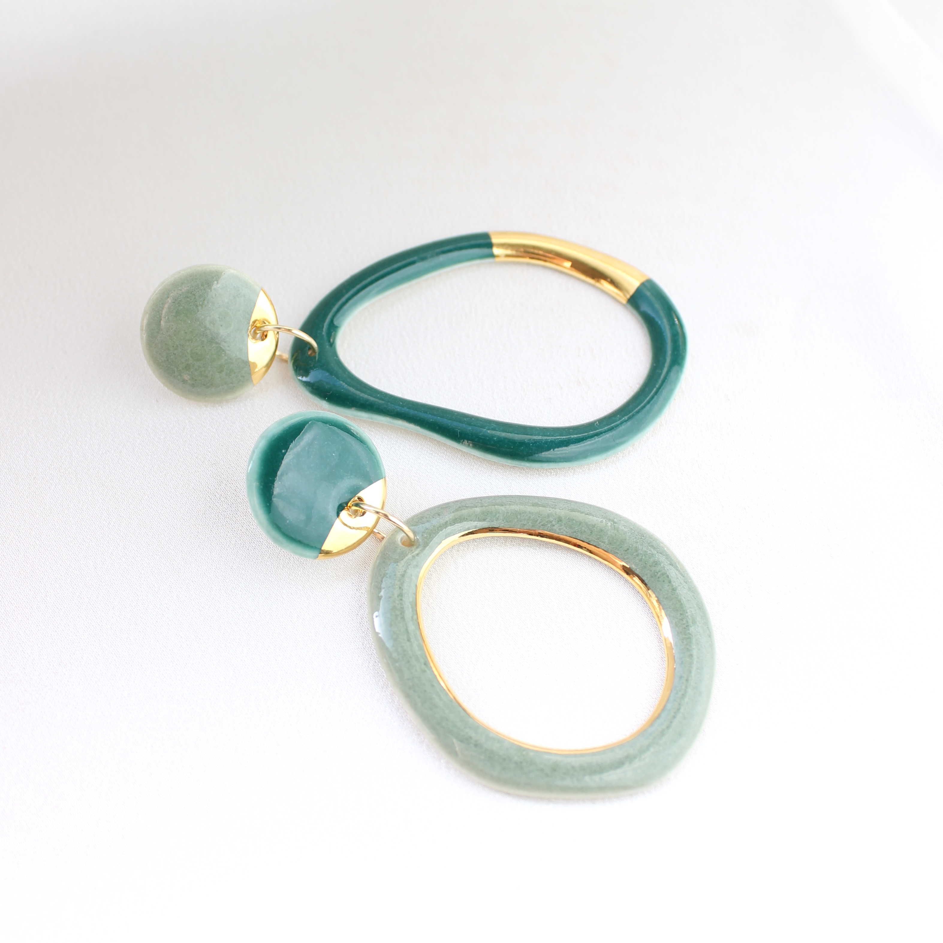 Kolczyki wykonane z porcelany, zdobione 24k złotem. Sztyfty wykonane zostały ze stali szlachetnej.