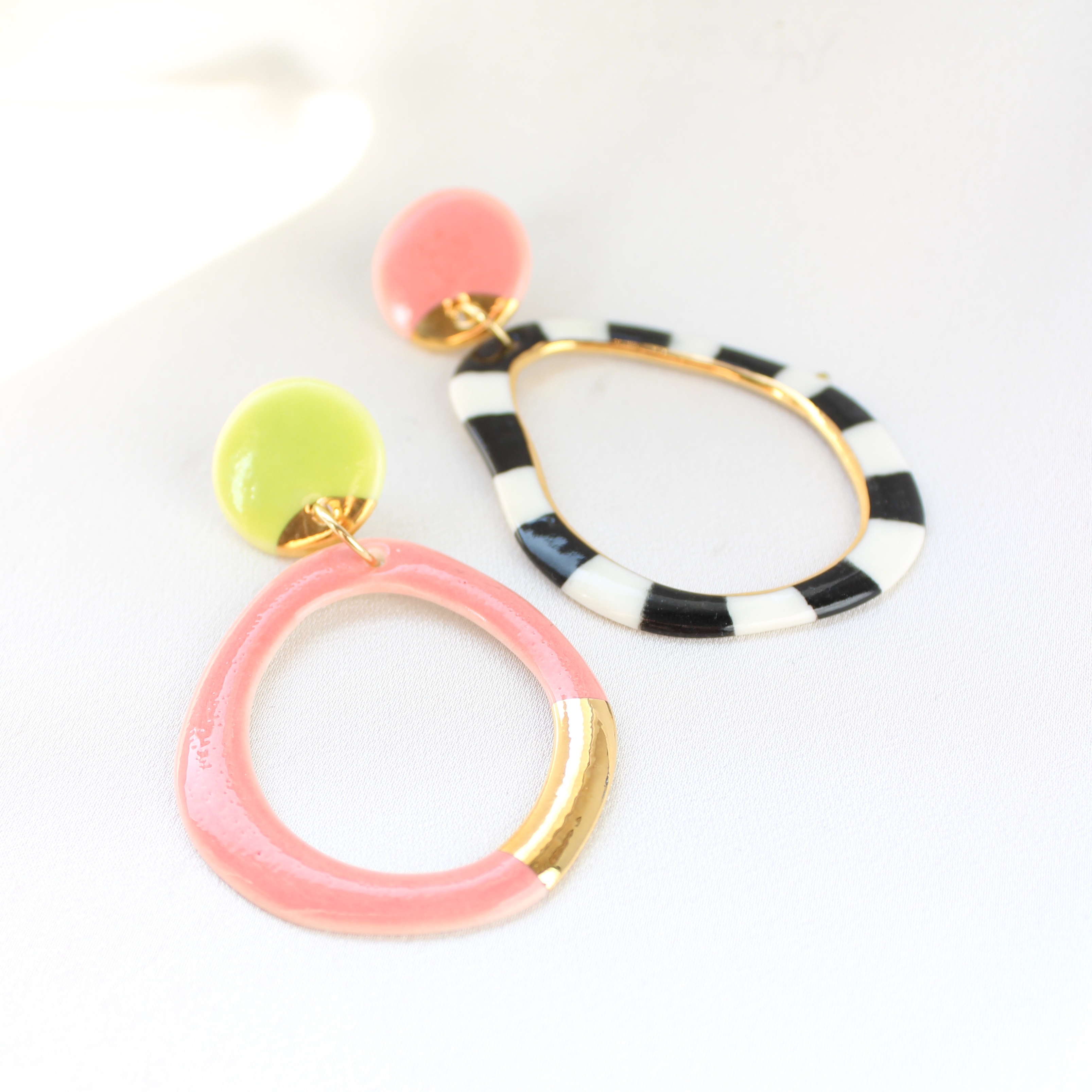 Kolczyki wykonane z porcelany, zdobione 24k złotem. Sztyfty wykonane zostały ze stali szlachetnej.