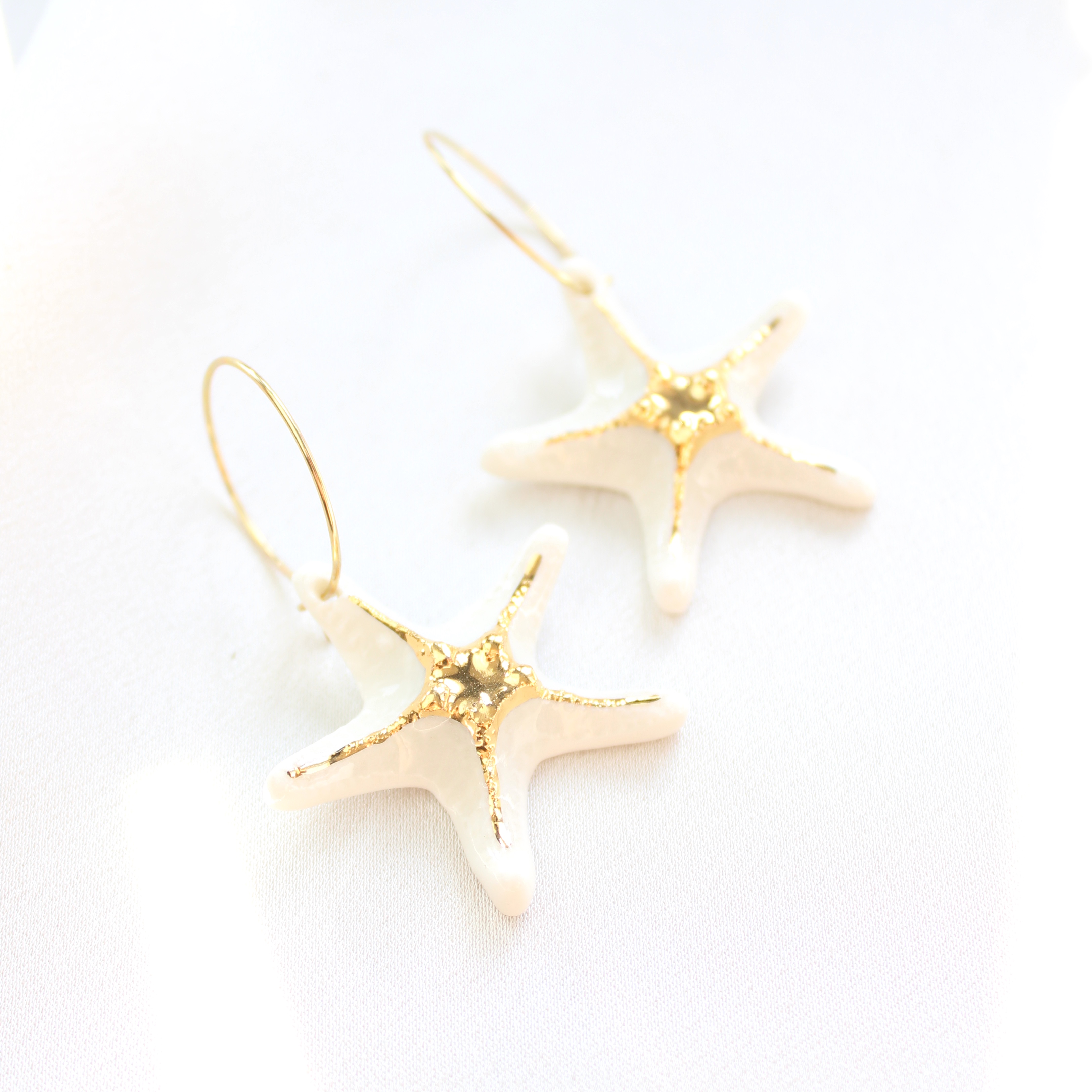 Kolczyki wykonane z porcelany, zdobione 24k złotem. Kółka wykonane zostały ze stali szlachetnej pozłacanej 24k złotem.