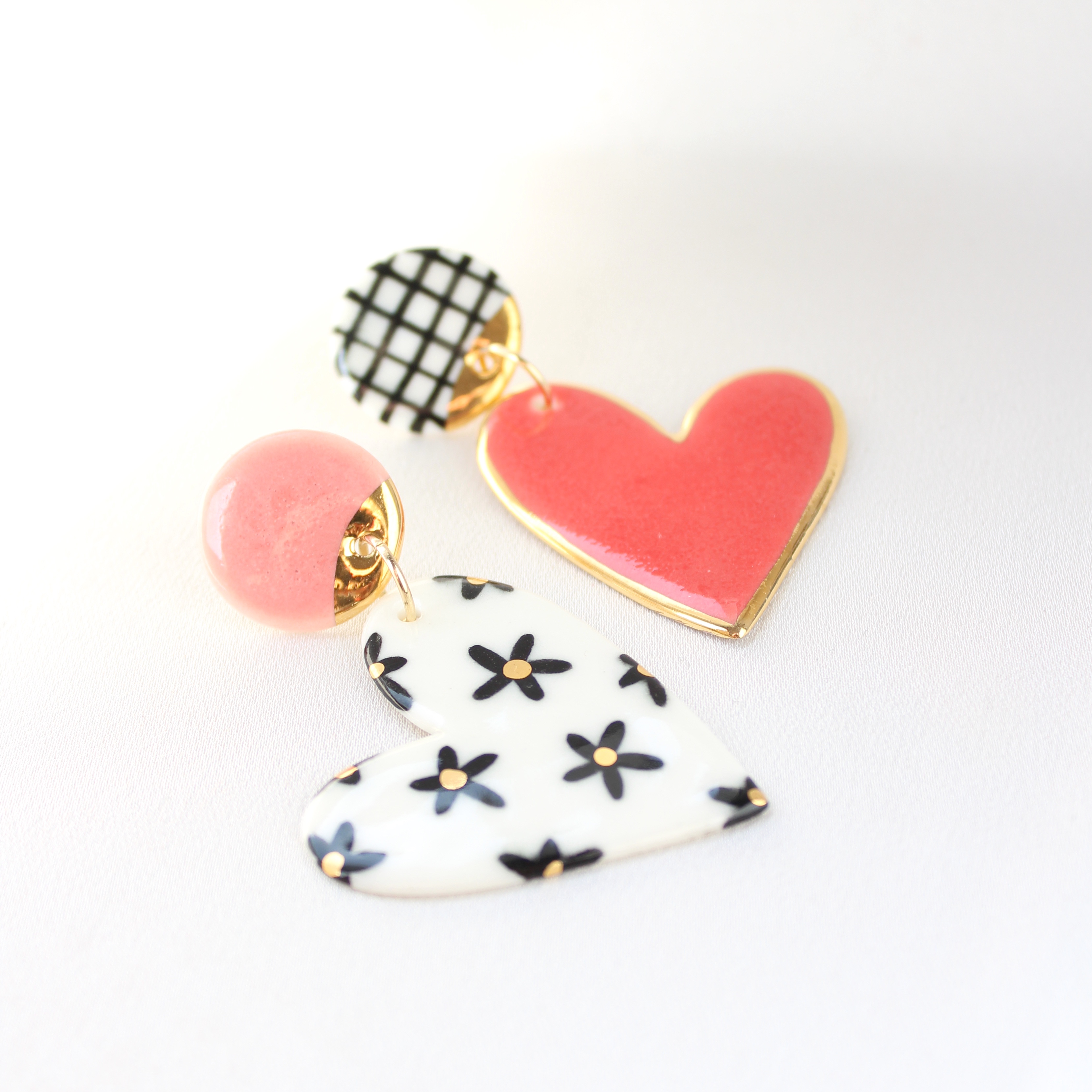 Kolczyki wykonane z porcelany, zdobione 24k złotem. Sztyfty wykonane zostały ze stali szlachetnej.
