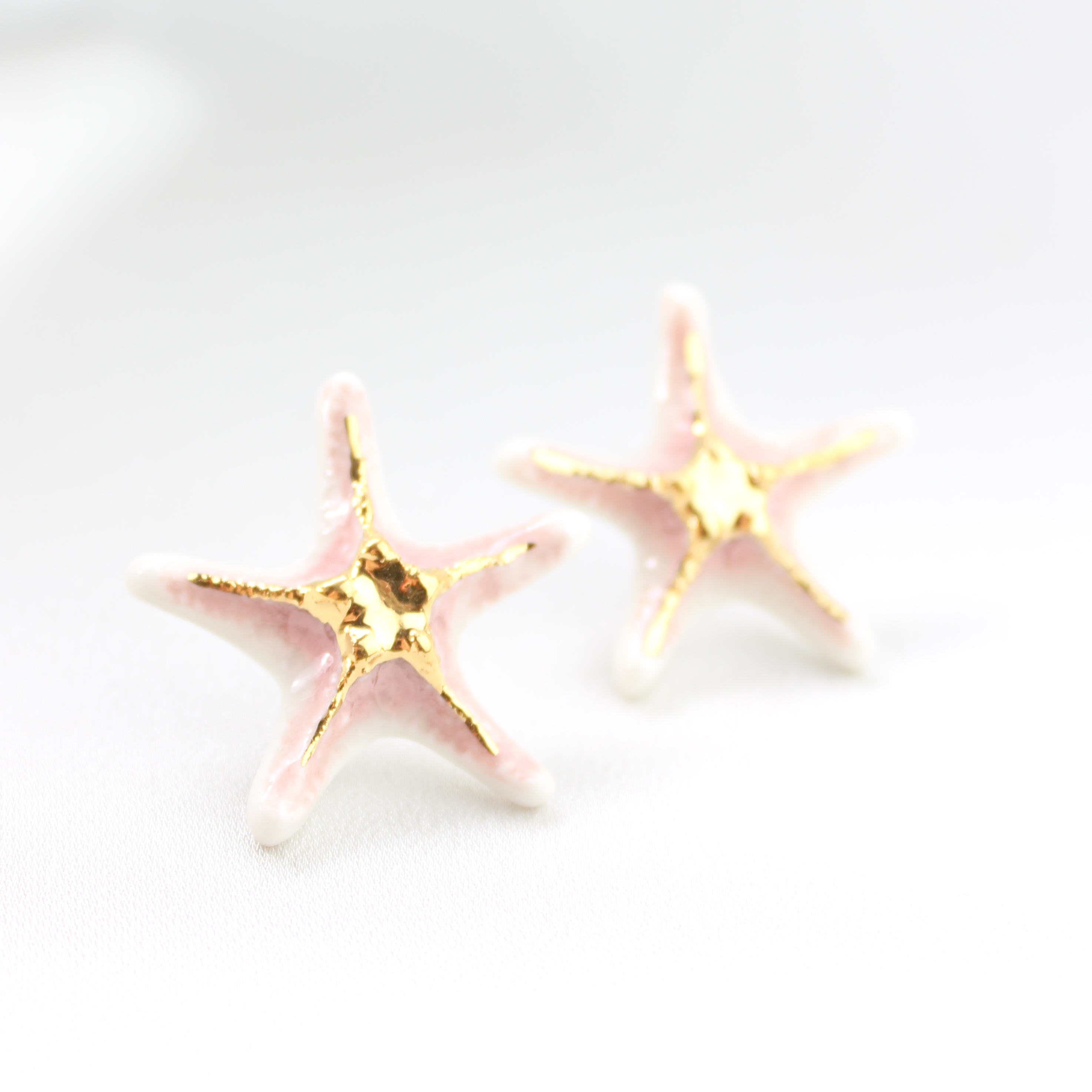Kolczyki wykonane z porcelany, zdobione 24k złotem. Sztyfty wykonane zostały ze stali szlachetnej.